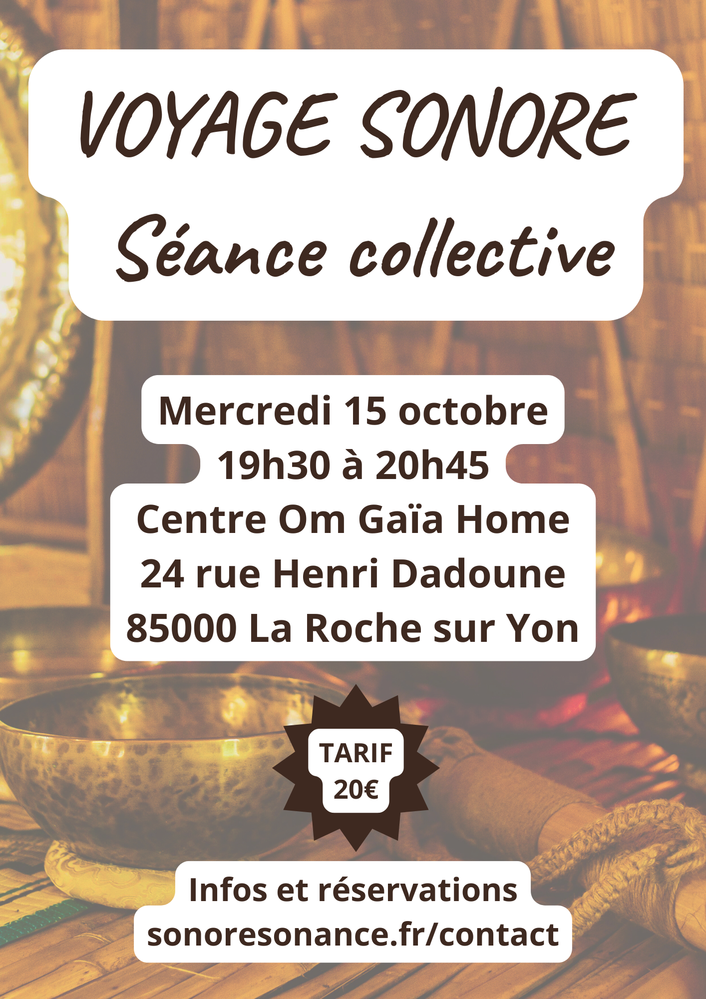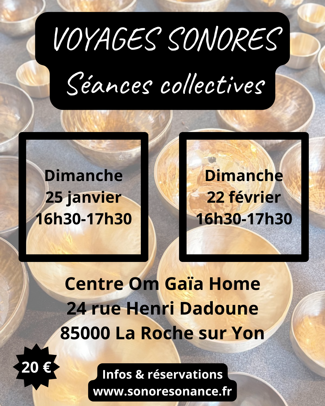 Le voyage sonore : Tout en douceur, les bols entrent en résonance et vous amènent délicatement et en toute sécurité vers un lâcher prise, un voyage profond vers vous même.